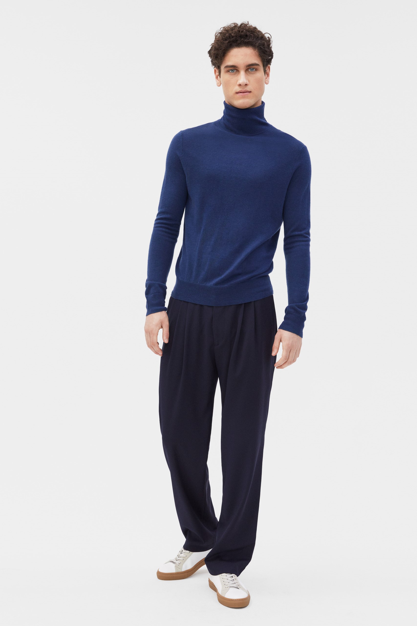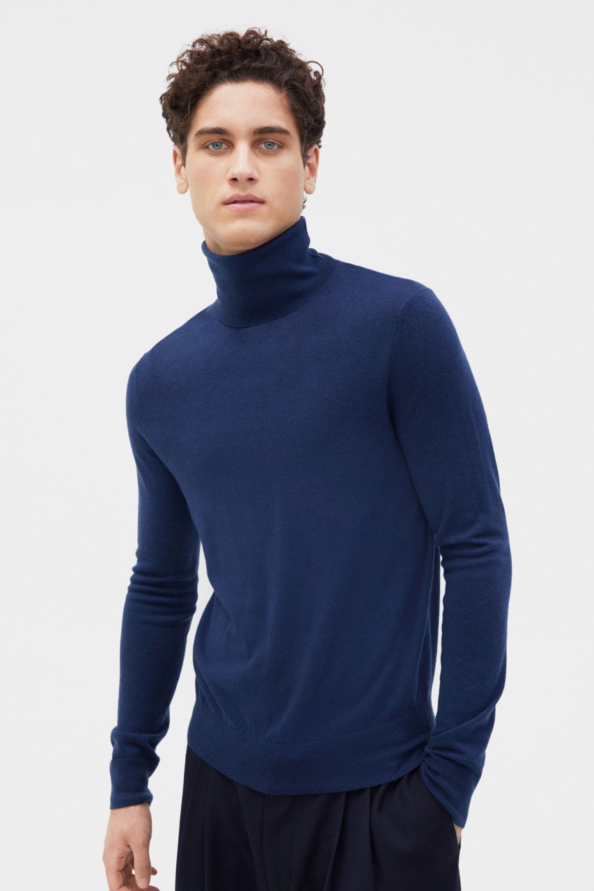 Perfect layered under a tailored jacket, this thin rollerneck made with soft cashmere adds cosy sophistication to your wardrobe. It has a thin ribbed neck, hem, and cuffs, and is fully fashioned with a classic fit.